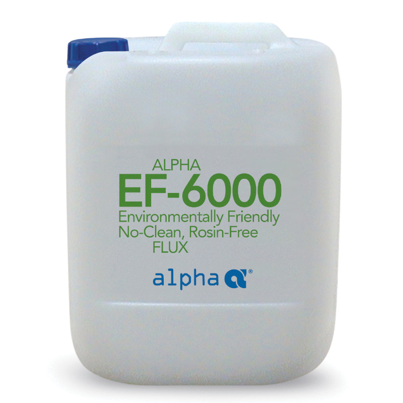 Alpha EF-6000 Flux là dòng trợ hàn thế hệ mới dành cho các dây chuyền hàn sóng và hàn chọn lọc hướng tới năng suất cao, bề mặt sau hàn sạch và độ tin cậy điện dài hạn. Trong sản xuất PCB, lớp oxit hình thành tự nhiên trên đồng, thiếc và chân linh kiện làm tăng năng lượng bề mặt, cản trở thấm ướt của hợp kim hàn và dẫn đến các khuyết tật như bắc cầu, icicles, void hay skip solder. Flux giữ vai trò “kích hoạt” bề mặt, phá oxit và hạ sức căng bề mặt để dòng hợp kim lan tỏa đều, qua đó hình thành mối hàn sáng, mịn và bền cơ điện. Khi mật độ linh kiện tăng, khe hở thu nhỏ và nhiệt độ quy trình lead-free cao hơn, một dòng flux no-clean có cửa sổ công nghệ rộng, ổn định và cặn mỏng như EF-6000 là lựa chọn cần thiết để vừa bảo đảm chất lượng vừa tối ưu tổng chi phí sở hữu (TCO).