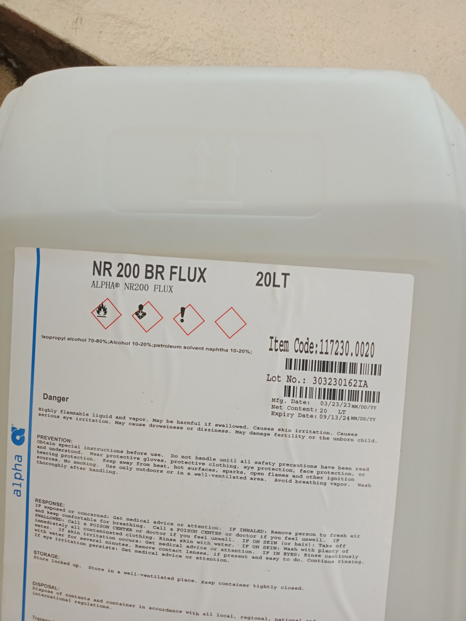 - Bảo quản: 5–25 °C, nơi khô ráo, tránh ánh nắng trực tiếp và nguồn lửa; không để đóng băng.